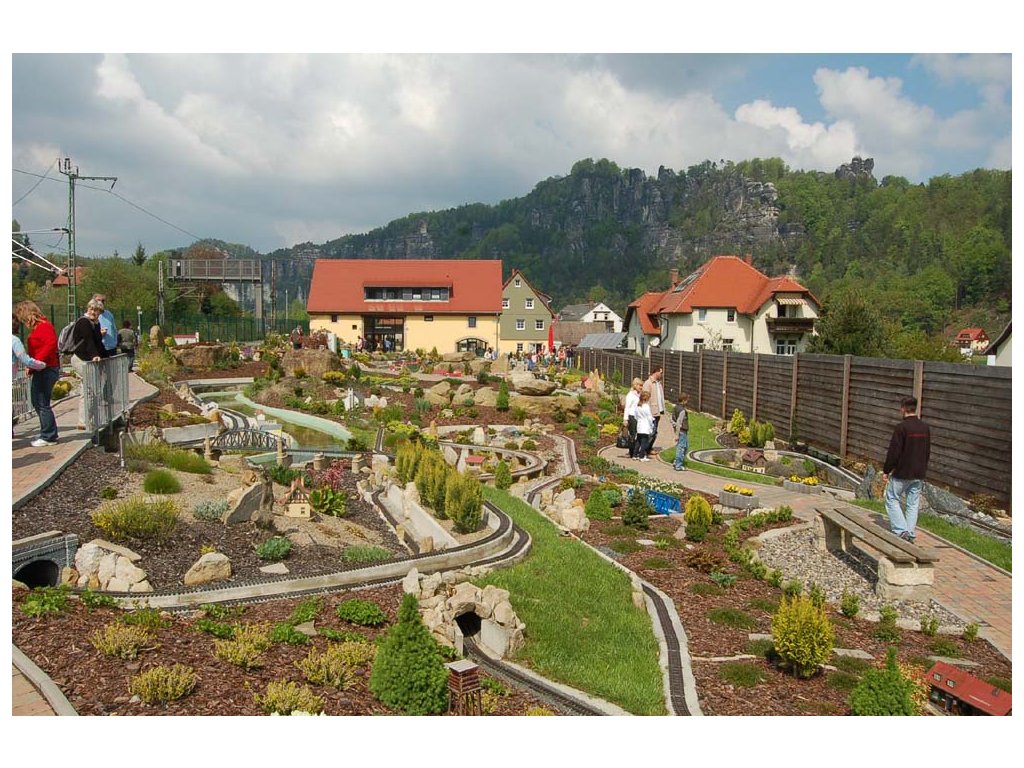 Najdete zde zmenšeniny známých železničních tras Saska, jako např. Lößnitzdackel, Kirnitzschtalbahn, Müglitztalbahn, stejně jako úzkokolejka Freital-Hainsberg-Kippsdorf a mnoho dalších. Tyto železniční trasy jsou umístěny do malebné miniaturní krajiny spolu s nejznámějšími budovami regionu, jako například Konigstein, zámek Moritzburg a nebo kostel Frauenkurche.