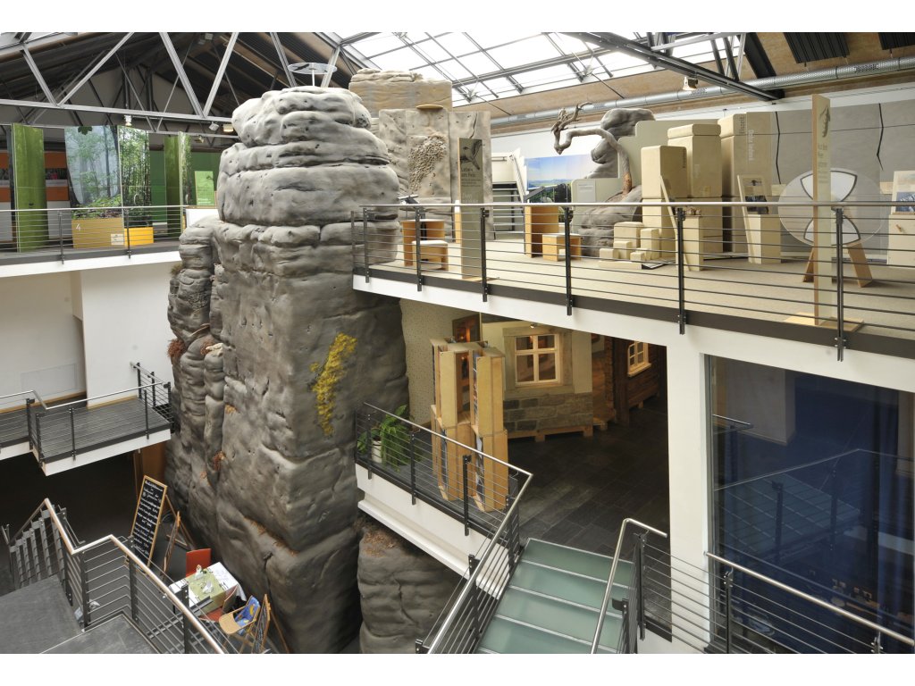 Místo potěší hlavně rodiny s dětmi. Prohlídku absolvujete individuálně, ale k dispozici jsou i české texty. Od podlahy do prvního patra tyčí dominantní pískovcové skalisko, středobod expozice, symbol Saského Švýcarska. Vydejte se na vrchol hory s vyhlídkou, ukázky skal, zvířat i rostlin, malé noktuárium (s vycpaninami), mikroskop, stereoskopické obrázky, poslech hudby inspirované místní krajinou, podstávkové i měšťanské domy.