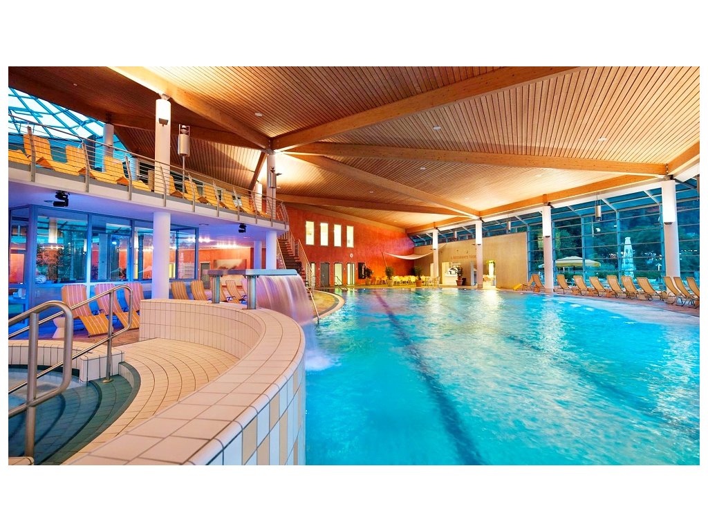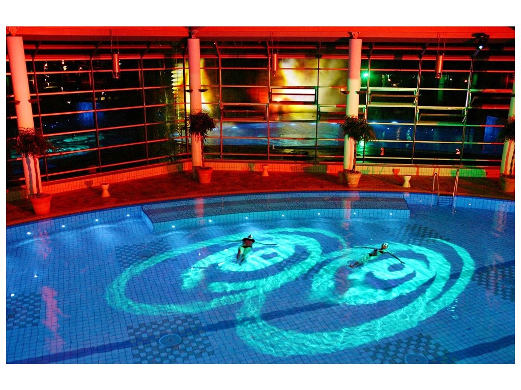 Zajděte do vnitřního nebo vnějšího plaveckého bazénu, vyhřívaného bazénu s masážními tryskami. Zabavte se v divoké řece nebo v dětském bazénu se skluzavkou. Relaxujte v saunovém světě s možností finské sauny, sauny se studenou párou, saunovací zahrady. Dejte si bylinkovou koupel a posléze se ochlaďte ve studené páře.