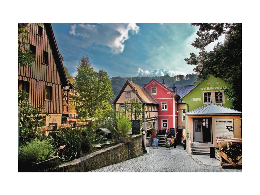 Siebenbrüderhäuser – Domy sedmi bratrů. Jejich vznik se spojuje s pověstí o rybáři, který nechal pro každého syna postavit jeden dům. Jeho vlastní dům byl ale svými rozměry nejvyšší. Už ve středověku vedla obchodní stezka z Postelwitz až do Sebnitz.