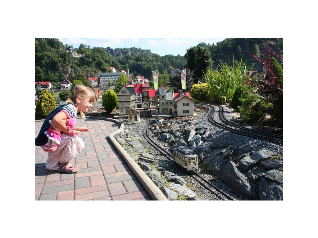 Najdete zde zmenšeniny známých železničních tras Saska, jako např. Lößnitzdackel, Kirnitzschtalbahn, Müglitztalbahn, stejně jako úzkokolejka Freital-Hainsberg-Kippsdorf a mnoho dalších. Tyto železniční trasy jsou umístěny do malebné miniaturní krajiny spolu s nejznámějšími budovami regionu, jako například Konigstein, zámek Moritzburg a nebo kostel Frauenkurche.