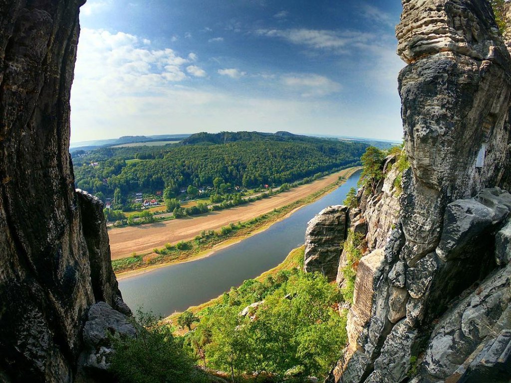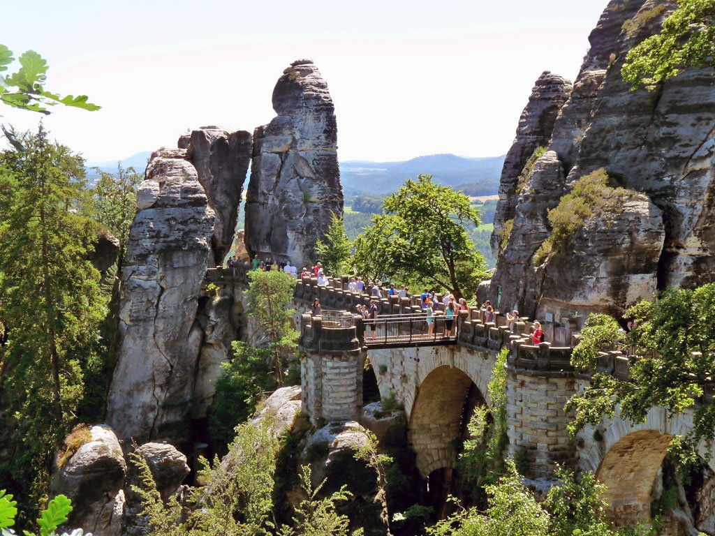 Od jezera vystoupáte k turistickému magnetu oblasti – skalní vyhlídce Bastei s torzy historického hradu a zbytky opevnění s placeným procházkovým okruhem. Na samotném vrcholu se nachází mnoho úchvatných skalních vyhlídek a rozsáhlý komplex stravovacích zařízení od bufetu až po restauraci nejvyšší cenové kategorie. Při západu slunce sestoupíte k přístavišti ke zpáteční cestě lodí. A kdo by se bál ze zdravotních důvodů pěší túry, může využít místní dopravy, kterou se dostanete až přímo k vyhlídce. Most je téměř 210 metrů nad hladinou řeky Labe, které je v těchto místech kolem 110 m.n.m. Nachází se zde přírodní rezervace Naturschutzgebiet Bastei, která má rozlohu okolo 800 hektarů, byla ustanovena v roce 1938 a je nejstarší v Saském Švýcarsku.