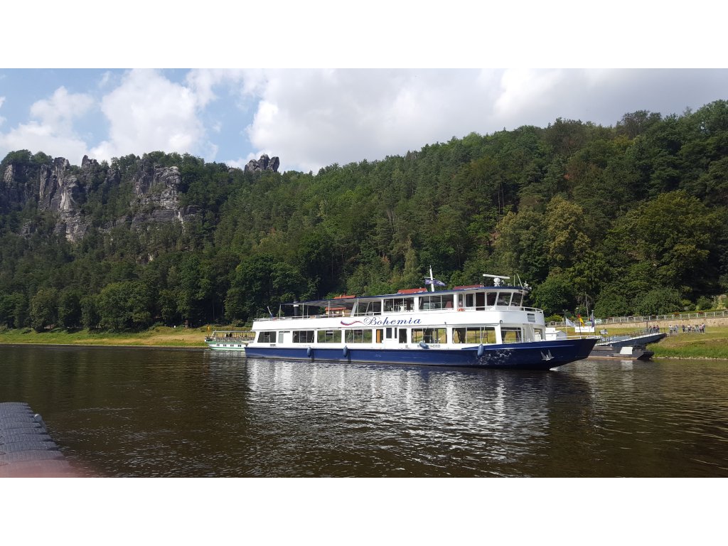 Vyplouváme z Děčína, původně lázeňského města s termálními prameny a ihned se otevírá krásný výhled na Labe a protilehlý děčínský zámek a Pastýřskou stěnu.