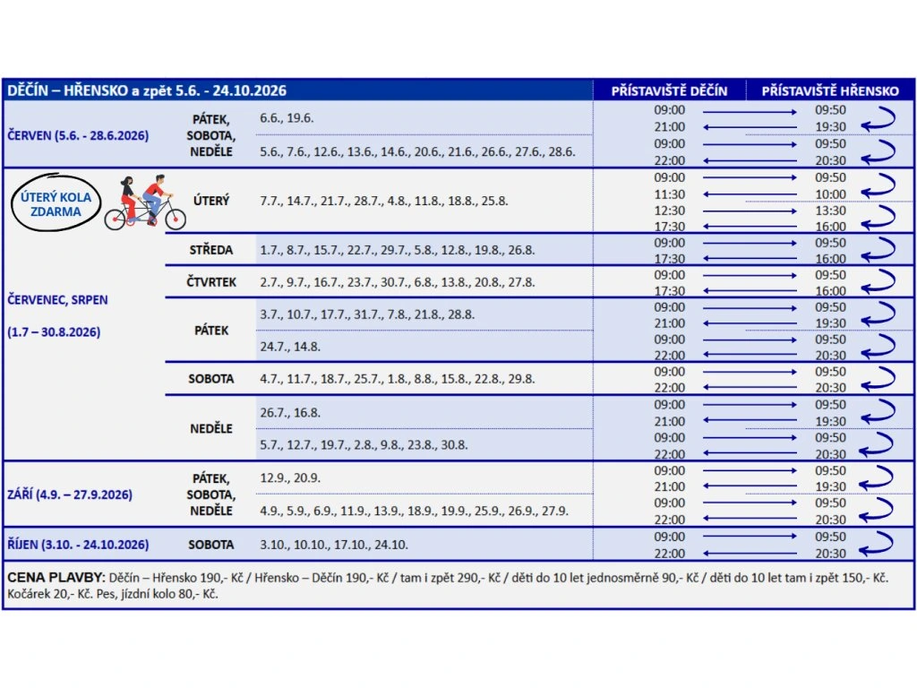 JÍZDNÍ ŘÁD lodní linky DĚČÍN - HŘENSKO A ZPĚT